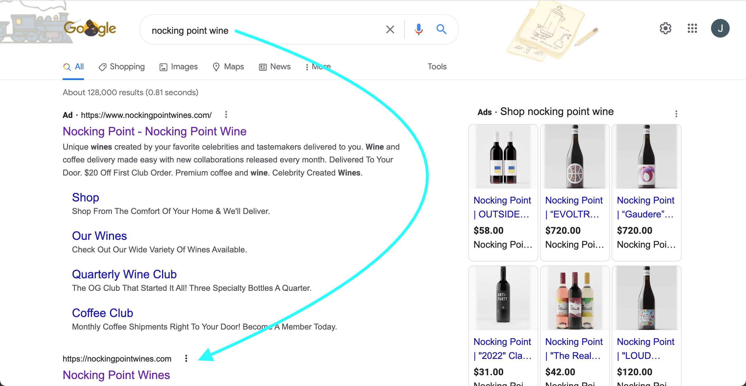 Here’s an example of that: There are 600 people each month that search for “Nocking Point wine” and another 1,000 searches for “Leonetti wine.” As you might expect, each of those respective businesses ranks number 1 on Google for those search terms. Your winery should too.